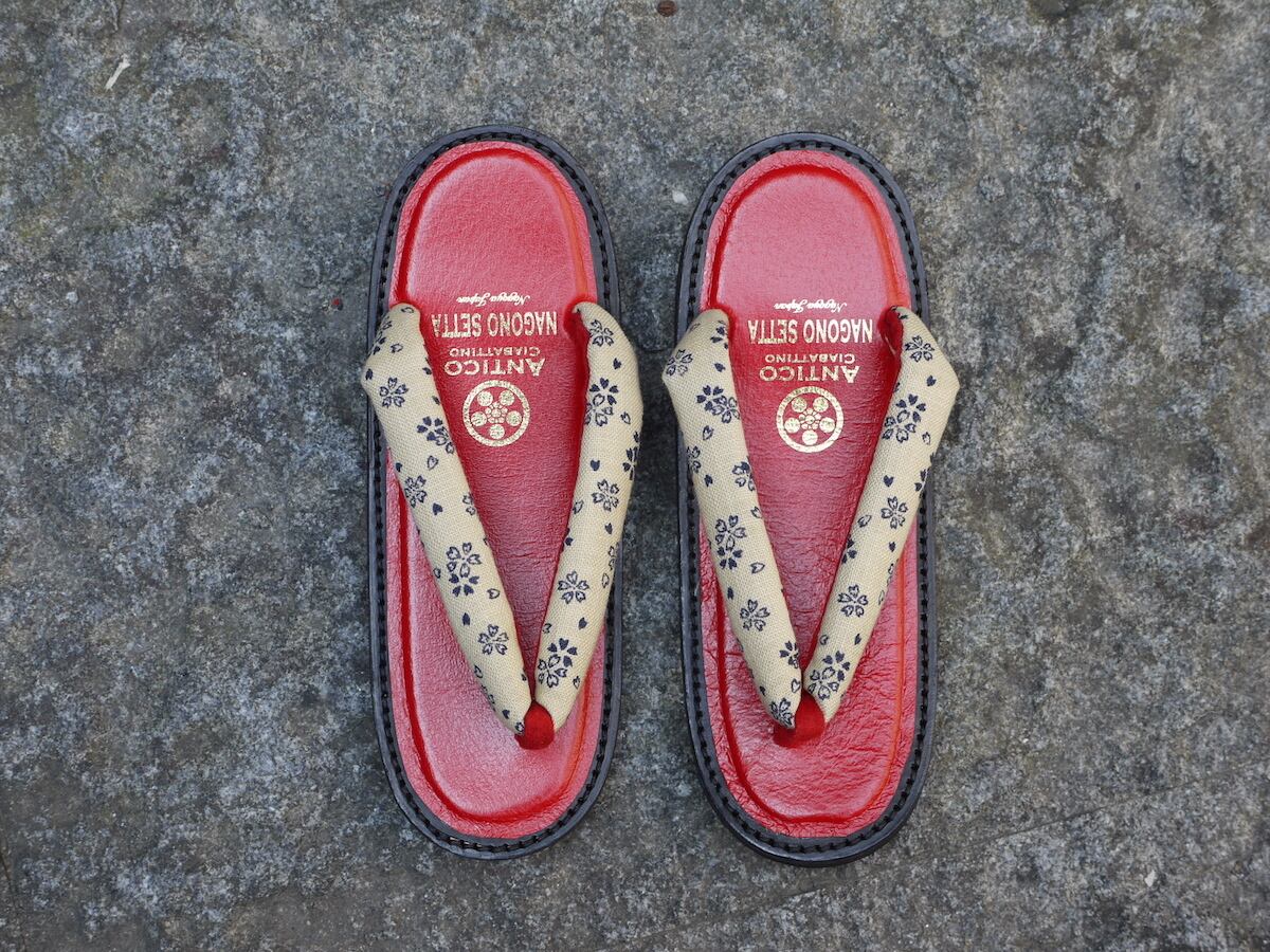 1.歩きやすさ: 伝統的な雪駄の鼻緒は中央ですが、那古野雪駄は親指側に寄せてあります。中心の製作も可能(購入時に選択)